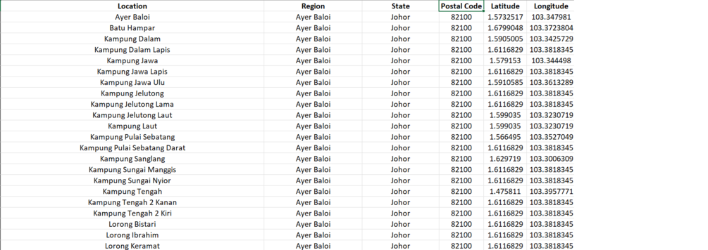 Postal Codes SG